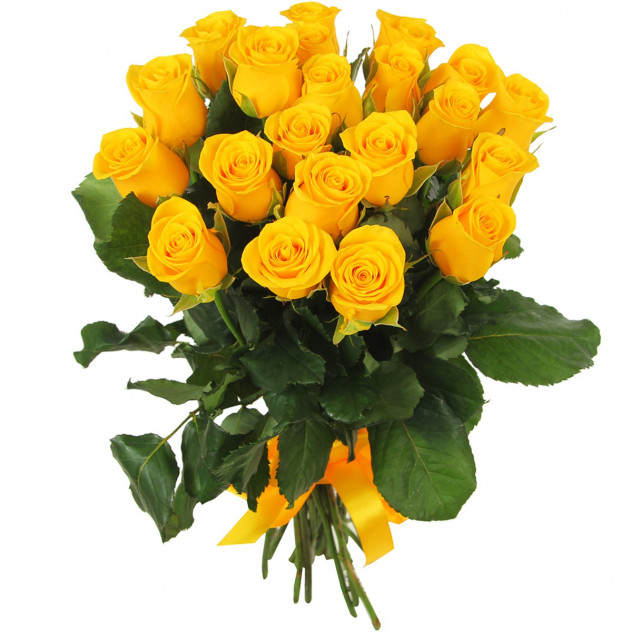 Состав: Упаковка (пленка с лентой), Роза желтая 60 см 21шт.