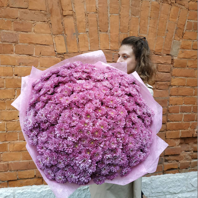 Роскошный букет из нежно-фиолетовой хризантемы, который сведет любую девушку с ума. Хризантема - цветок уникальный - красивый, ароматный, пышный! Мало какой цветок может сравниться с хризантемой по этим параметрам, ведь недаром цветок этот считается королевским в странах Востока. А еще, такой букет отличается особой стойкостью. Ведь при правильном уходе, хризантема может стоять до 2 недель. Главное, вовремя подрезать ее и менять воду. Так что хризантема - идеальный выбор для букета по любому поводу.