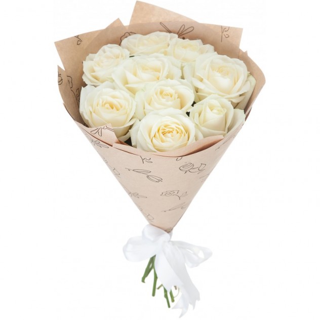 Букет из 11 белых роз в крафте запомнится навсегда вашему получателю!