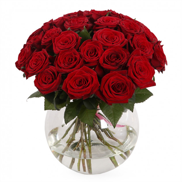 Ароматные розы в удобной стеклянной вазе.