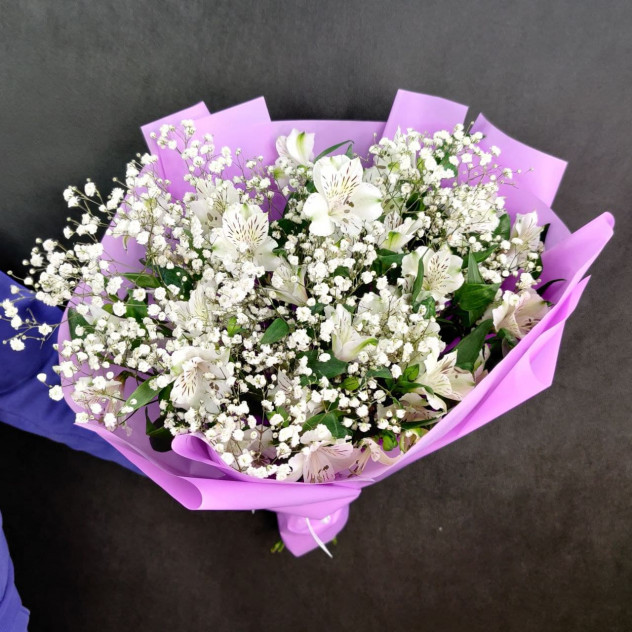 Чудесный букет из альстромерии и гипсофил. Нежная роскошь для самого близкого человека!
