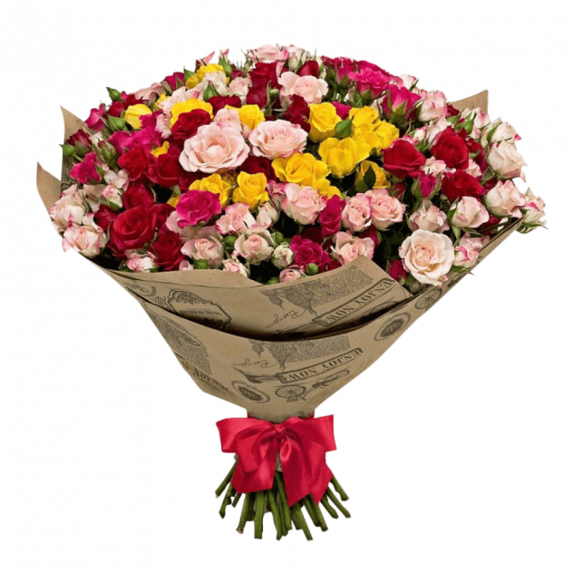 Состав: Упаковка для букета: крафт-бумага, Роза кустовая 25шт.
