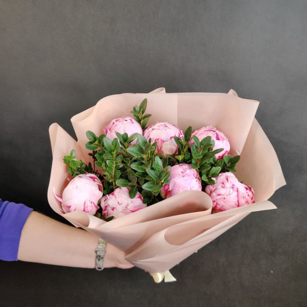 Нежный букет из благоухающих крупных цветков пионов, который сделает солнечным и радостным любое настроение!